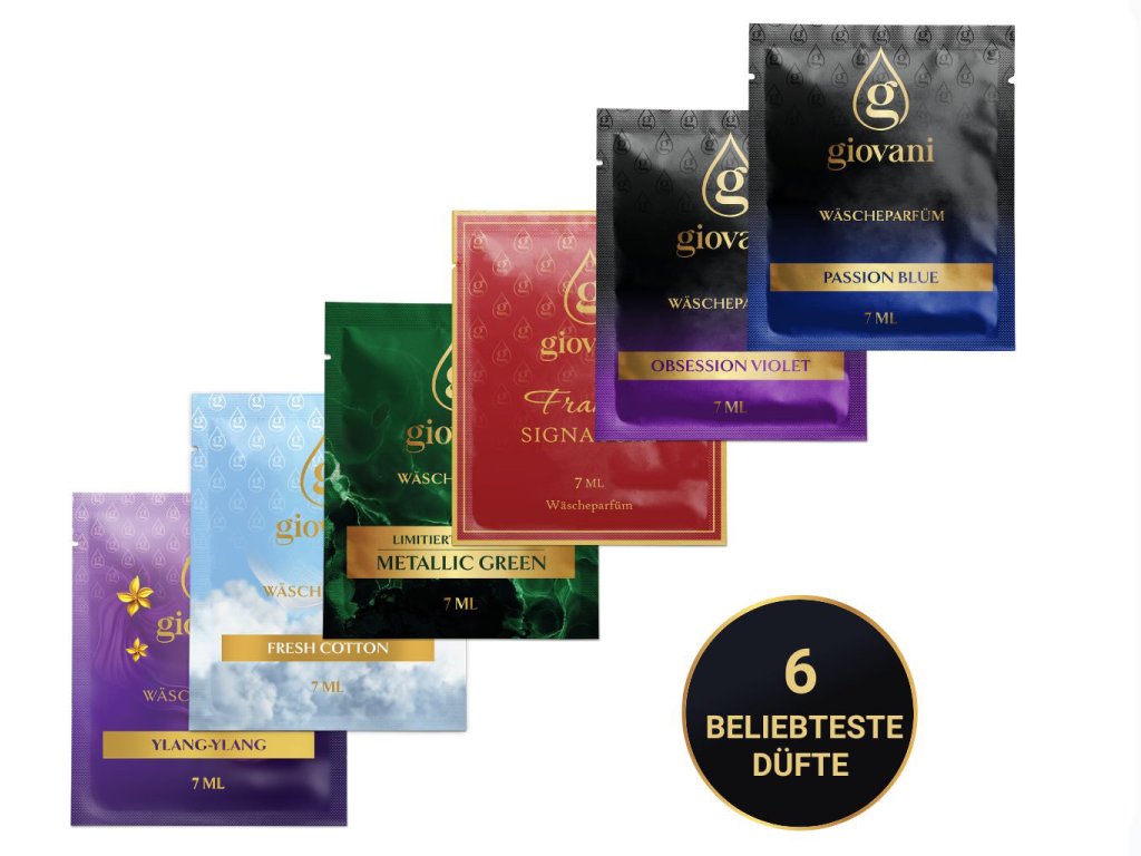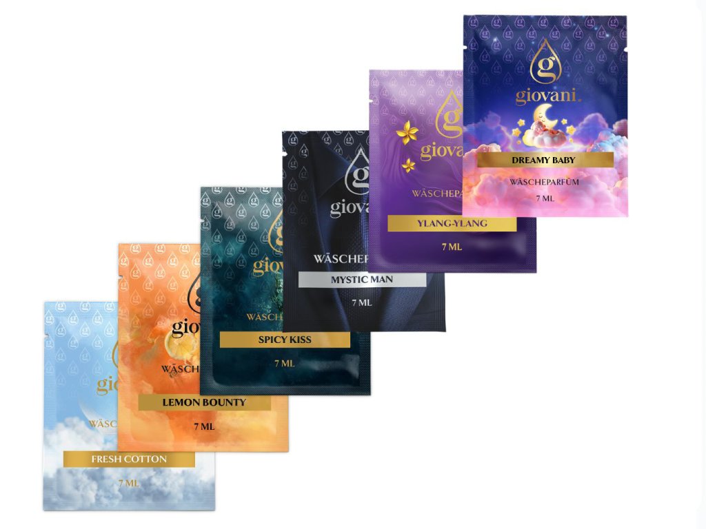 MIT PROBEN KÖNNEN SIE NICHTS FALSCH MACHEN Sie möchten nicht gleich mehr Geld ausgeben, weil Sie Giovani® Wäscheparfüms noch nicht kennen? Probieren Sie die Proben, beim nächsten Mal entscheiden Sie sich sicher für diese. |