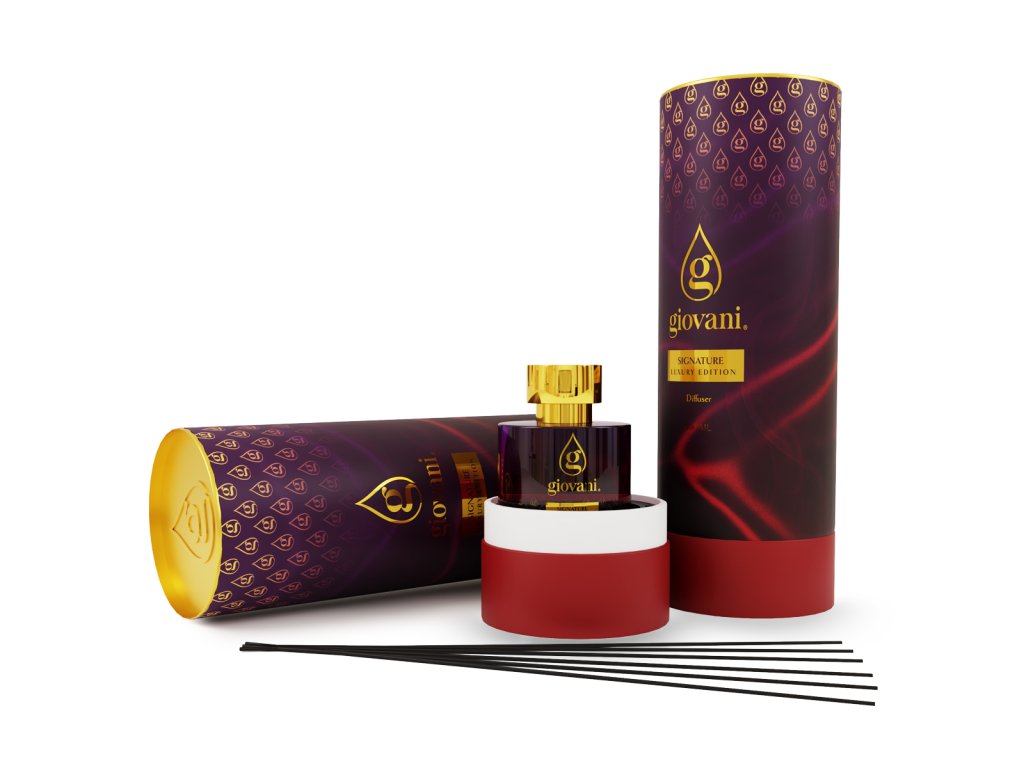 Ein charakterstarker Duft mit luxuriöser Seele und geheimnisvoller Anziehungskraft. Der Raumduft Diffuser Giovani® SIGNATURE eröffnet mit frischen Noten von Mandarine und Bergamotte, ergänzt durch exotisches Ylang-Ylang. Im Herzen verschmelzen Jasmin und süßes Karamell.