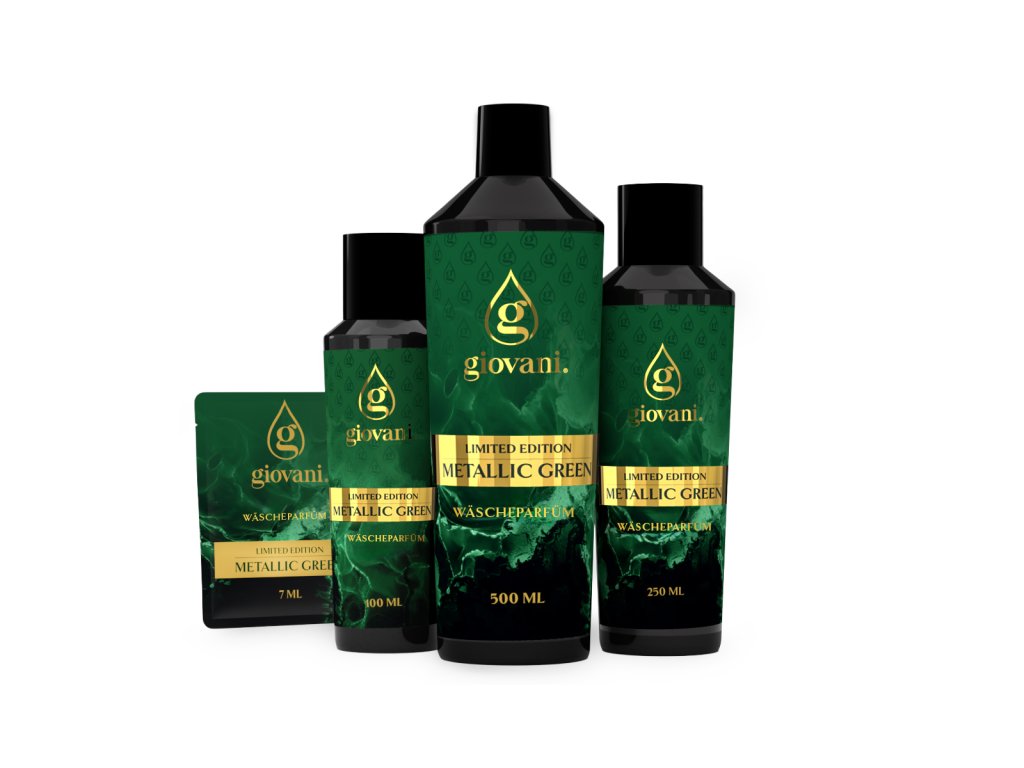 Die limitierte Edition GIOVANI® Metallic Green wurde mit dem Ziel der Einzigartigkeit und eines intensiven Dufterlebnisses kreiert. Nach dem Waschen duftet Ihre Wäsche und Ihr Zuhause noch lange nach einem süß-frischen Parfüm.